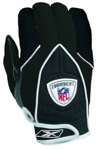 Reebok NFL Equipment XG3 receiver / running back glove has a smooth spandex back allows free range of motion and with a secure fit. The dual layer mesh provides increased wicking and feel. Molded neoprene with dense cells adds comfort and low impact padding. Polymeric palm base grips well in all climates. The MVP is a great all around receiver's / running backs glove.